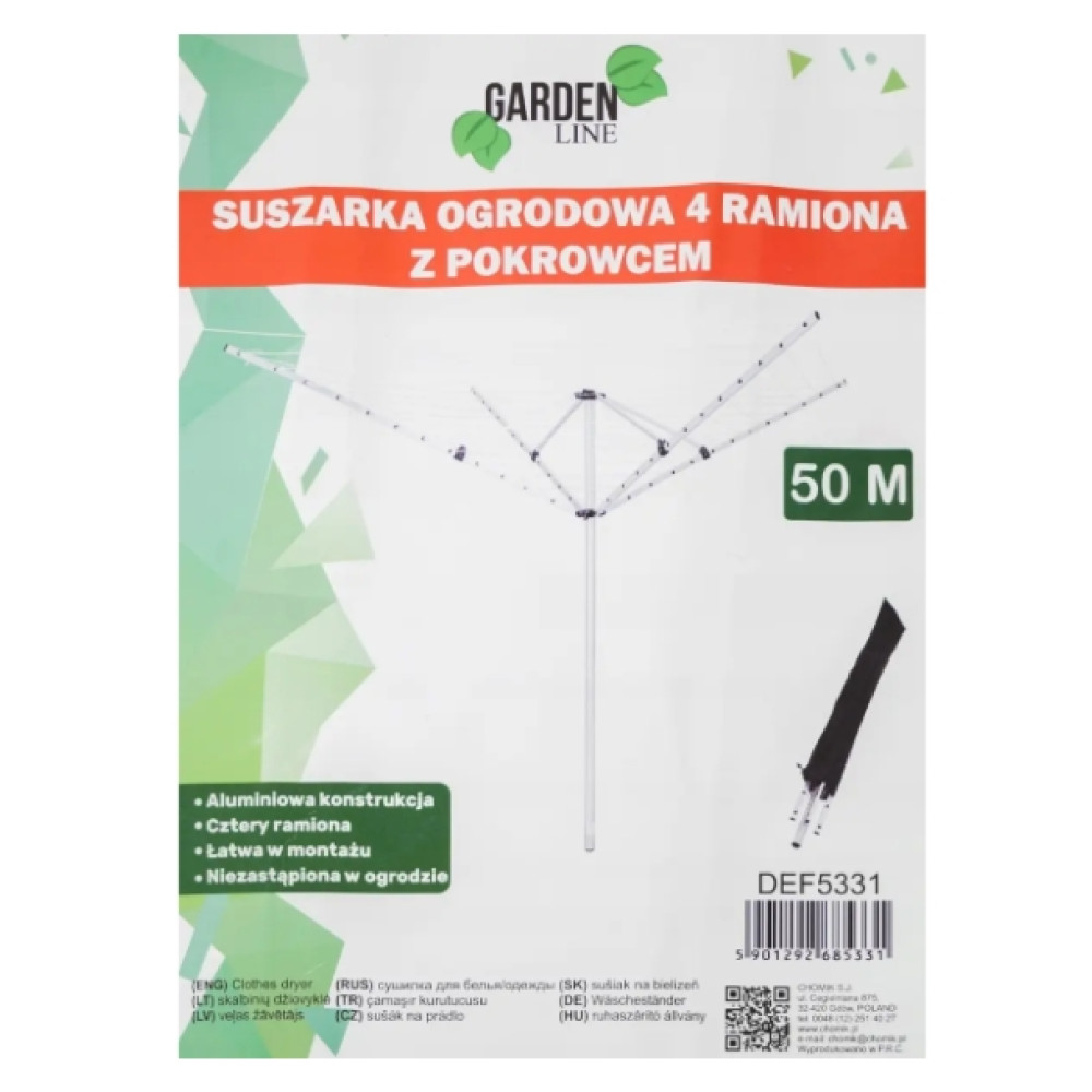 GARDEN LINE Kerti ruhaszárító 4 karos 50 m védőhuzattal