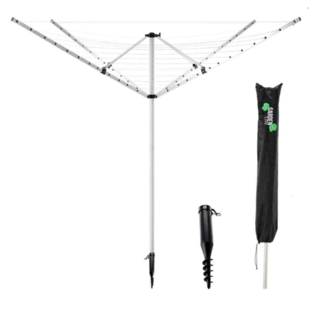 A kerti ruhaszárító kényelmet biztosít mindazoknak, akik kertes házzal vagy társasház előtti kerttel rendelkeznek. A 4 karos kerti szárító összesen 50 méternyi szárítókötelet, azaz szárítófelületet kínál a ruhák számára.
